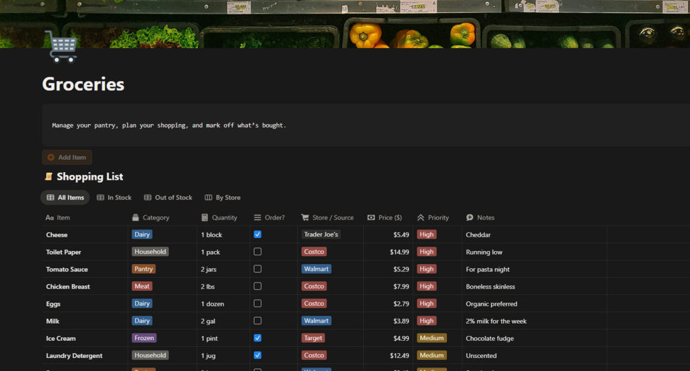 Groceries – Notion Meal Planner & Shopping List Template
