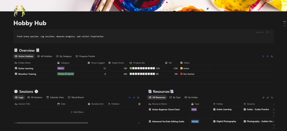 Hobby Hub – Notion Hobby Tracker & Progression Template